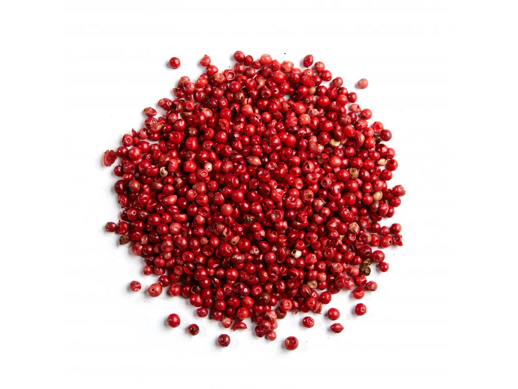 Běžný pepř máme zažitý jako šedé dochucovadlo, které jinak není příliš zajímavé. Nyní však můžete poznat aroma a chuť kvalitního, nepřeschlého růžového pepře s plným aroma. Růžový pepř není klasickým pepřem, jsou to bobule pepřovce brazilského Schinus terebinthifolius. Růžový pepř je vyhledáván pro své unikátní podmanivé aroma, vhodné do mnoha různých pokrmů, zejména masných. Pozor, patří do rodiny kešuovitých a může vyvolávat alergie u osob alergických na stromové ořechy.