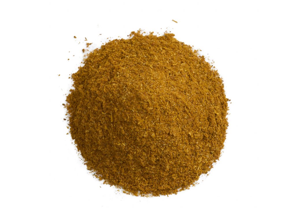 Složení: koriandr, kurkuma, hřebíček, zázvor, pepř černý, chilli, římský kmín, cejlonská skořice, kardamom zelený, česnek, mořská sůl max. 5%