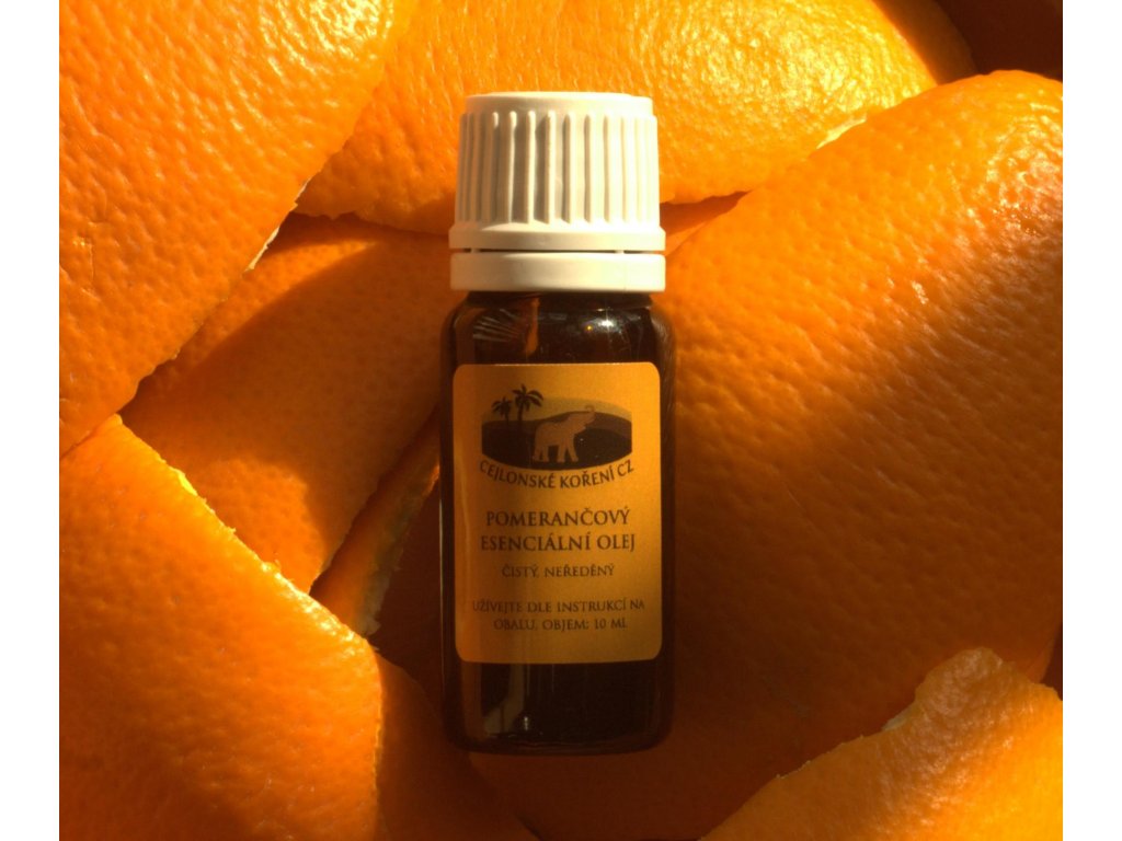 Hlavními aromatickými složkami pomerančového esenciálního oleje jsou D-limonen (cca 80%), linalool (cca 9%), myrcen, a-terpineol, nerolidol, farnesol a mnoho dalších aromatických látek. Na pomerančovém esenciálním oleji byly prováděny studie mírnění deprese a zánětů, detoxikačních, antimikrobiálních a antioxidačních účinků, péče o pleť. Dobře se kombinuje se skořicovým a hřebíčkovým olejem.