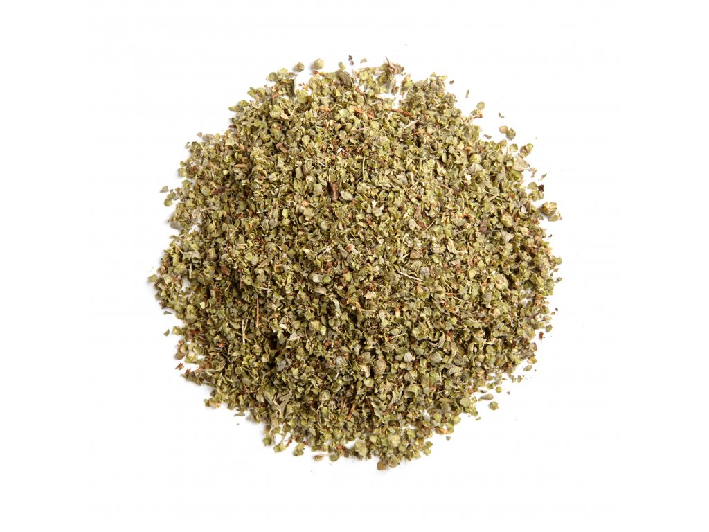Sušené listy krétské majoránky zahradní. Má plné, intenzivní aroma.