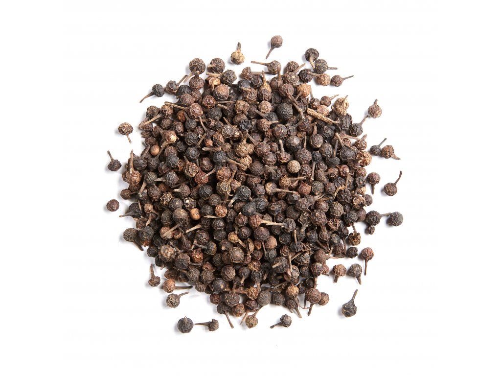 V každém koření cílíme na nejvyšší kvalitu, a tak Vám nabízíme tento úžasný kubebový pepř z Indonesie. Není přesušený, starý a je plný svého esenciálního oleje a aromat. Vůní nejvíce připomíná nové koření s příjemnými citrusovými tóny a nádechem černého pepře. Toto aroma v kombinaci s jemnou hořkostí a svěžestí, kterou zanechává v ústech, vedla k tomu, že se dodnes používá k ovonění ginu a cigaret. Kolem roku 1640 portugalský král zakázal dovoz kubebového pepře, aby podpořil prodej černého pepře, díky čemuž se kubebový pepř z Evropy téměř vytratil a přestal být známý, přestože byl ve středověku velmi oblíben - kubebový pepř Evropané používali dříve, než černý pepř. Velmi dobře se hodí k masům, do omáček, ale i do sladkostí (najdeme jej v receptech s mandlovým mlékem nebo v semolině s datlemi a medem). Je používán především v indonéské a marocké kuchyni.